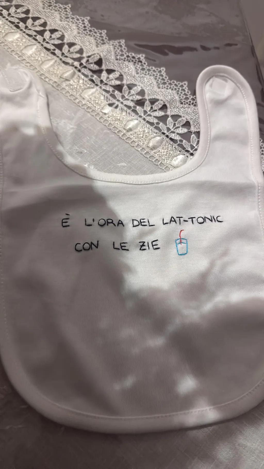 bavaglino in cotone con chiusura a clip o in velcro a seconda della disponibilità.